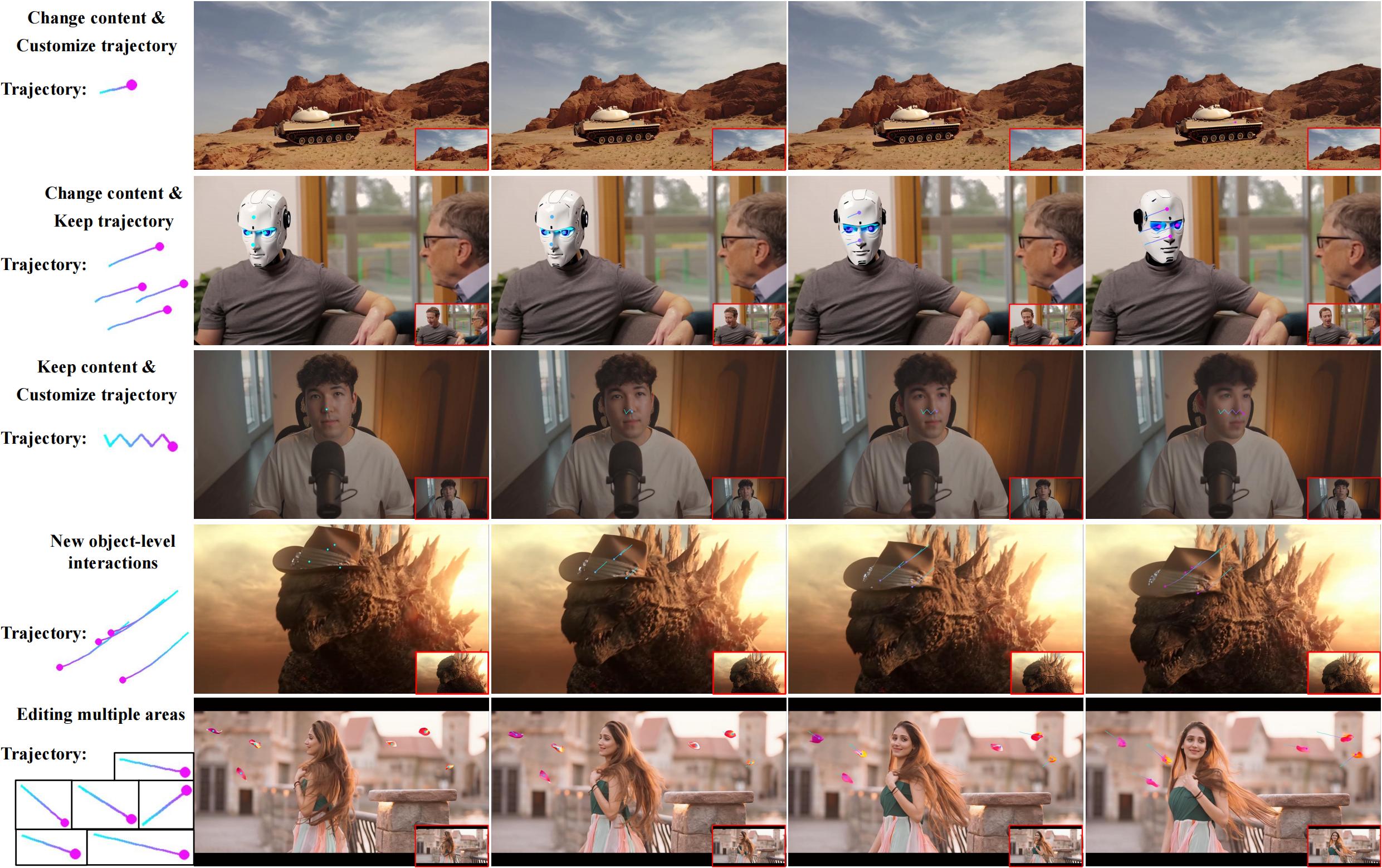 ReVideo aims to solve the problem of local video editing. The editing target includes visual content and motion trajectory modifications.