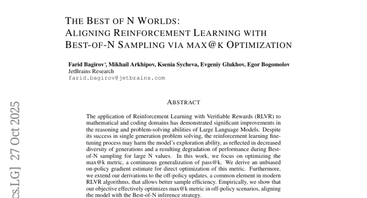The Best of N Worlds: Aligning Reinforcement Learning with Best-of-N Sampling via max@k Optimisation