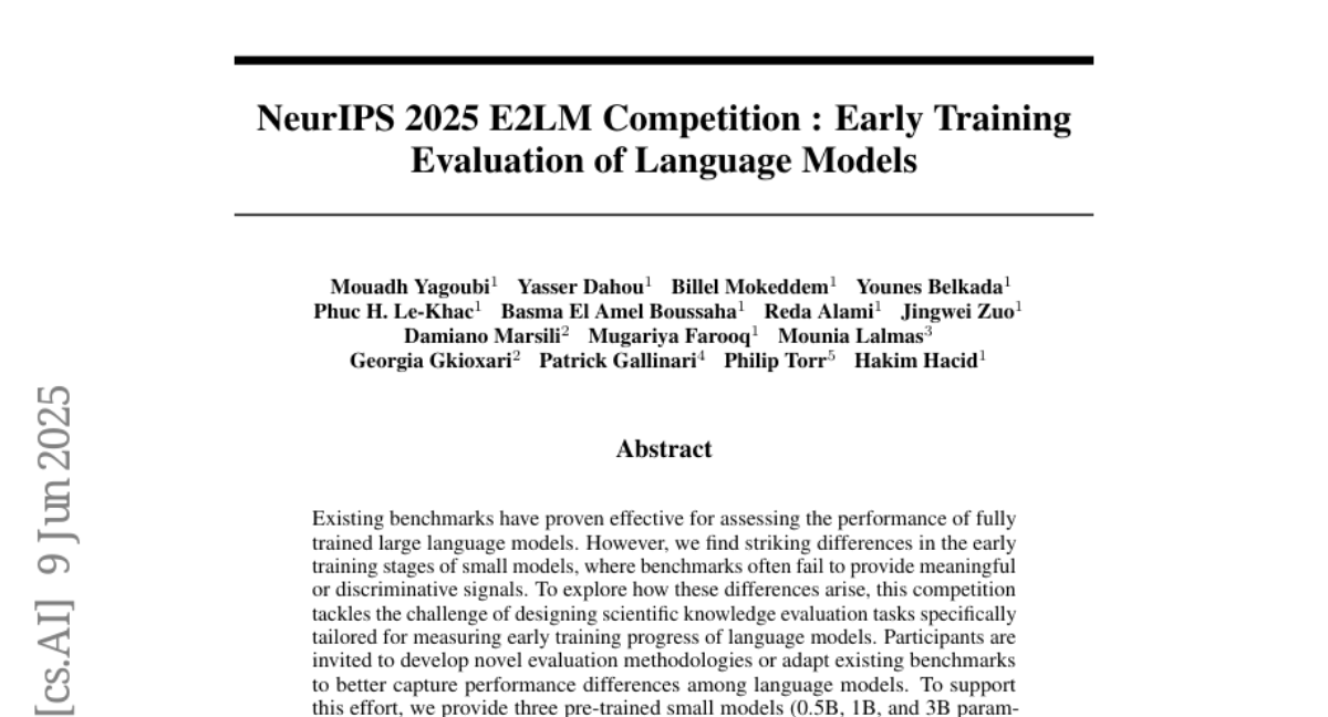 Announcing NeurIPS 2025 E2LM Competition: Early Training Evaluation of Language Models