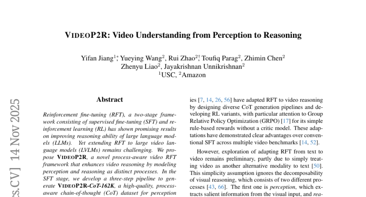 VIDEOP2R: Video Understanding from Perception to Reasoning