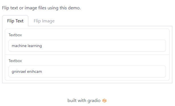 text_input.change(flip_text, inputs=text_input, outputs=text_output)