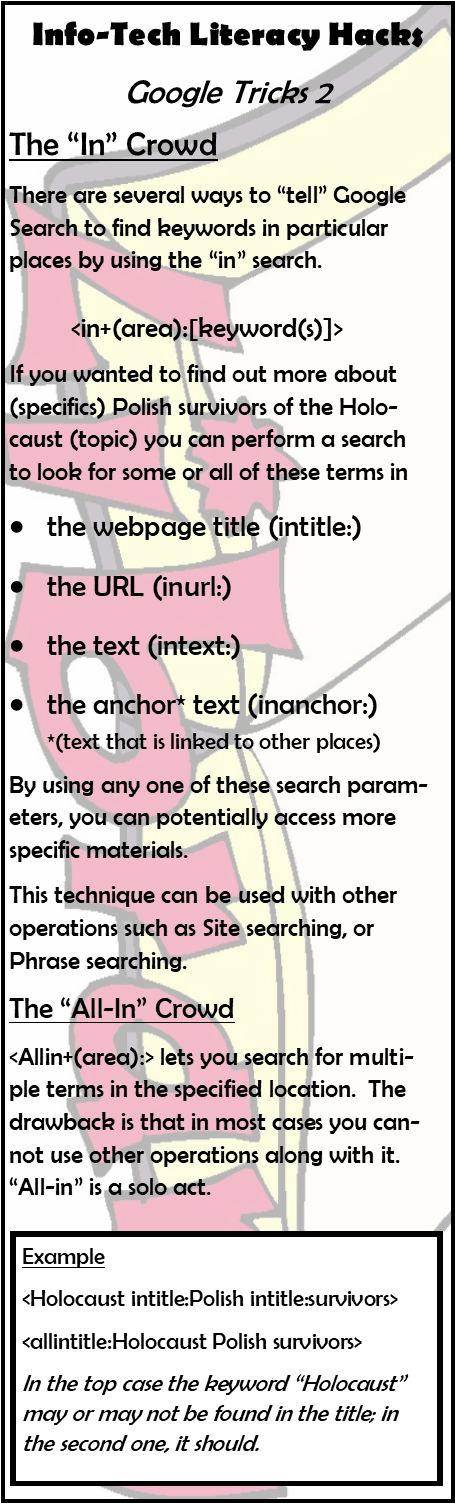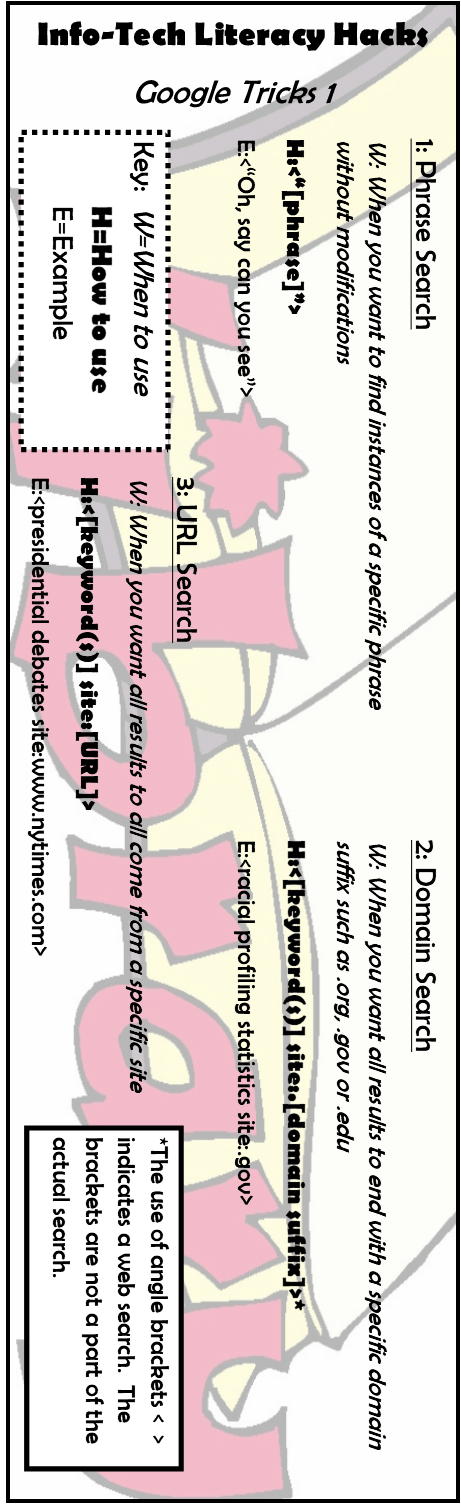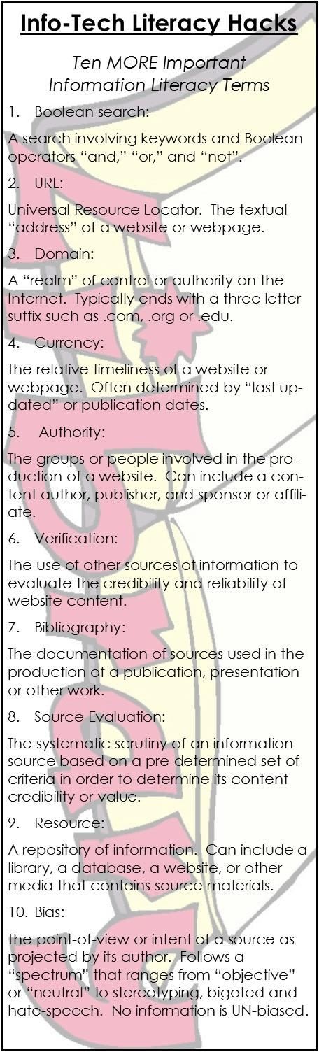 These "hacks" are contained in a smart-looking bookmark. Please print them out and pass them along! Remember, Information-Technology Literacy is a LIFE SKILL and can benefit everyone!