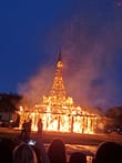 Despite the customary speeches from city officials, people came with chairs, drinks, their children, bicycles, and cameras to record this significant event. People were friendly and some were crying. At a specified time, the firemen surrounded the Temple ignited the flames and very quickly the structure went up in fire. Sparks flew up and into the sky and were quickly watered down by the firemen. The burn was very controlled although the heat and smell of the smoke covered us all.