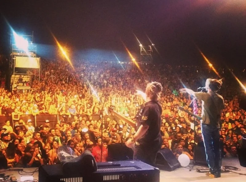 SOJA performing to a sold out crowd of over 8,000 at Kakaʻako Amphitheater in April, 2013. At the show, lead singer Jacob Hemphill acknowledged the instrumental role Hawaiʻi has played in the musical career of the band, telling fans with gratitude that they Hawaiʻi was first to play their music on the radio and the first to sell out their show.
