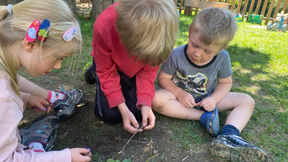 At the library, Amy and Polly were right along with us singing, reading, and learning all about chipmunks and squirrels! The class had so much fun going on nature treasure hunts together after story time, before going back to school to find their hidden acorns and cooking up “acorn soup” in the mud kitchen.