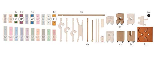 With Xyloba piccolino you can build marble runs that are different every time. The 4 interchangeable sound modules produce simple melodies. Xyloba is a creative marble run for building and composing at the same time. Xyloba develops the motor function and spatial imagination and facilitates a creative approach to music. It is truly a wonder from Switzerland that can last for generations. The simple interlocking Xyloba system allows an almost unlimited number of variations. The fun really begins when, in addition to the building, one starts composing.
