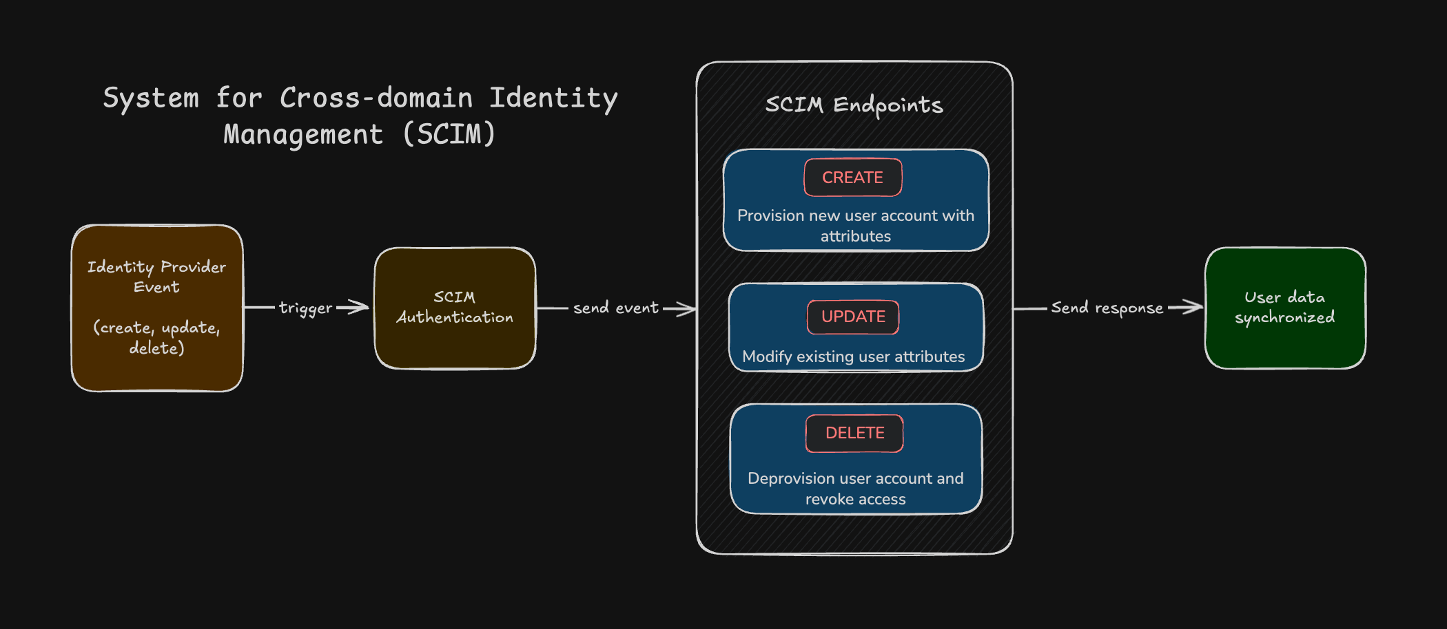 - System for Cross-domain Identity Management (SCIM): For more robust user lifecycle management, SCIM allows your IdP to communicate user identity information to Hugging Face. This enables automatic creation, updates (e.g., name changes, role changes), and deactivation of user accounts on Hugging Face as changes occur in your IdP. This ensures that user access is always up-to-date with their status in your organization.