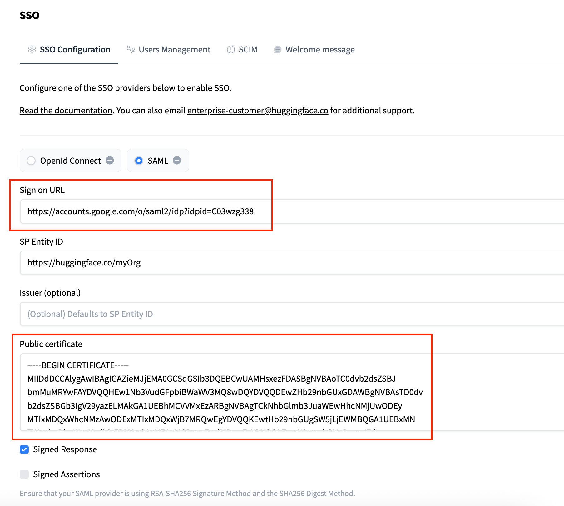 Step 2: Configure Hugging Face with Google’s IdP Details