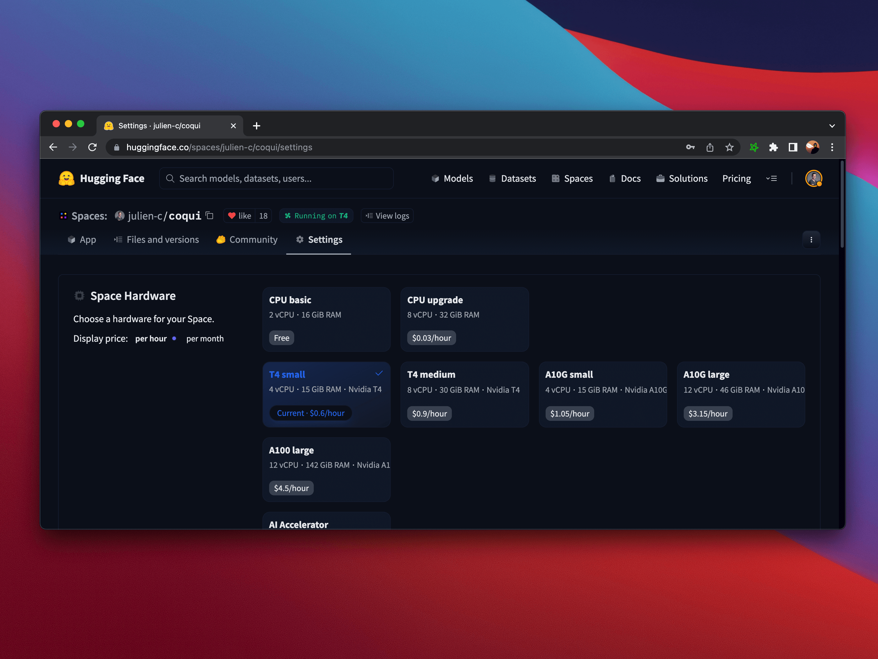 Do you have an awesome Space but need help covering the hardware upgrade costs? We love helping out those with an innovative Space so please feel free to apply for a community GPU grant using the link in the Settings tab of your Space and see if yours makes the cut!