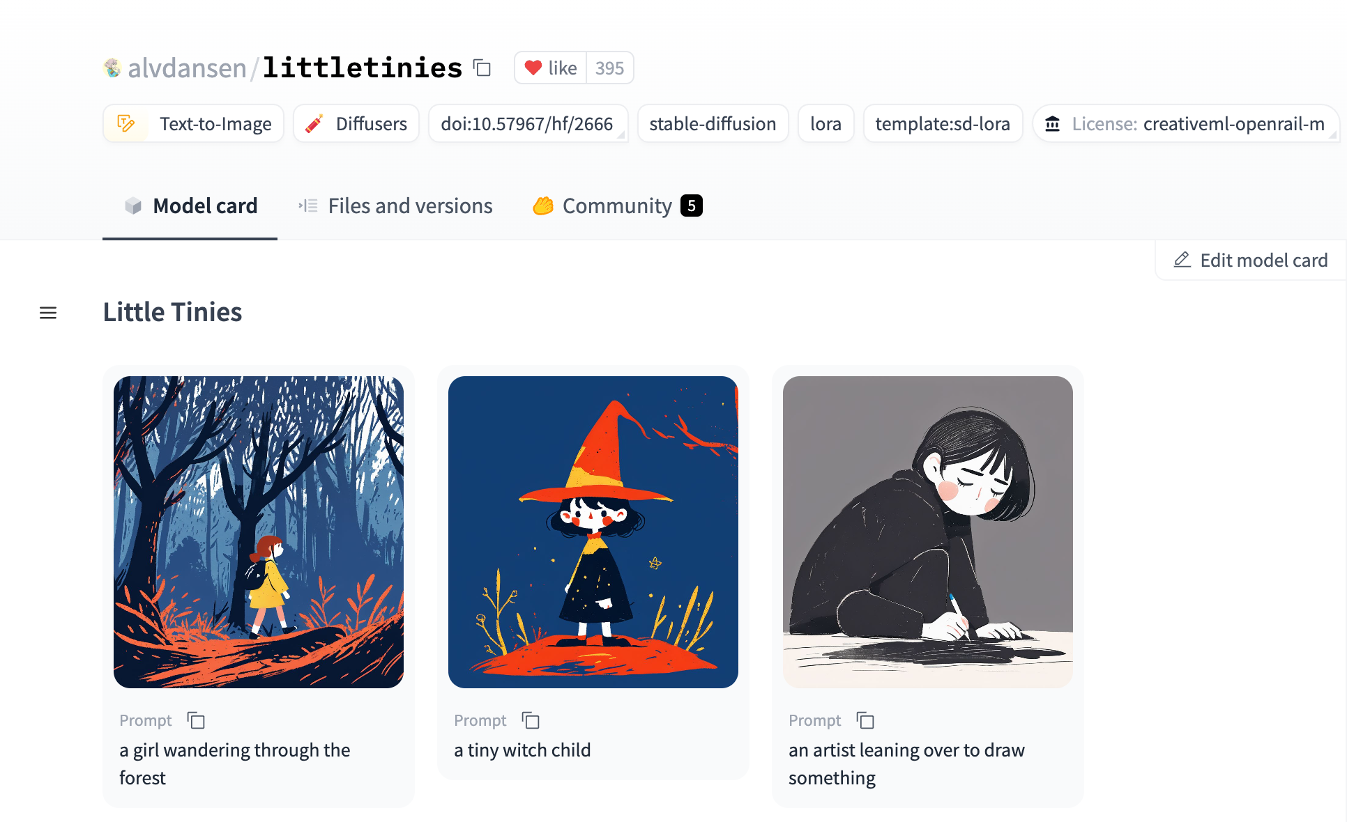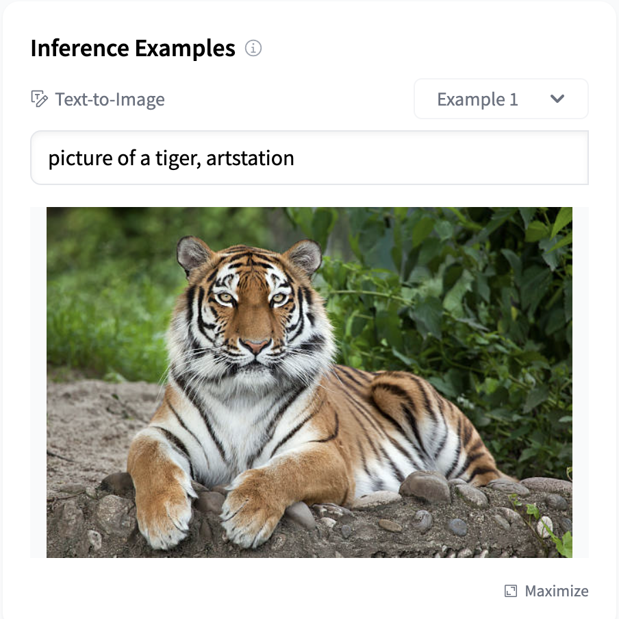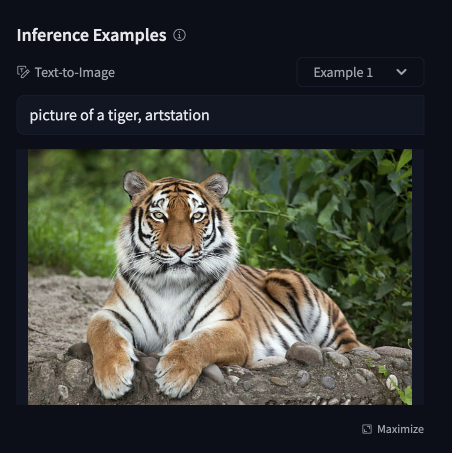 We can also surface the example outputs in the Hugging Face UI, for instance, for a text-to-image model to display a gallery of cool image generations.