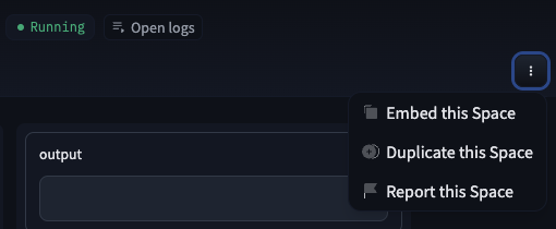 Once your Space is up and running you might wish to embed it in a website or in your blog. Embedding or sharing your Space is a great way to allow your audience to interact with your work and demonstrations without requiring any setup on their side. To embed a Space its visibility needs to be public.
