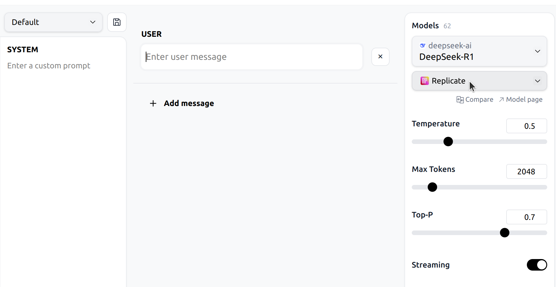 A comprehensive chat interface supporting various models and providers available at https://huggingface.co/playground.