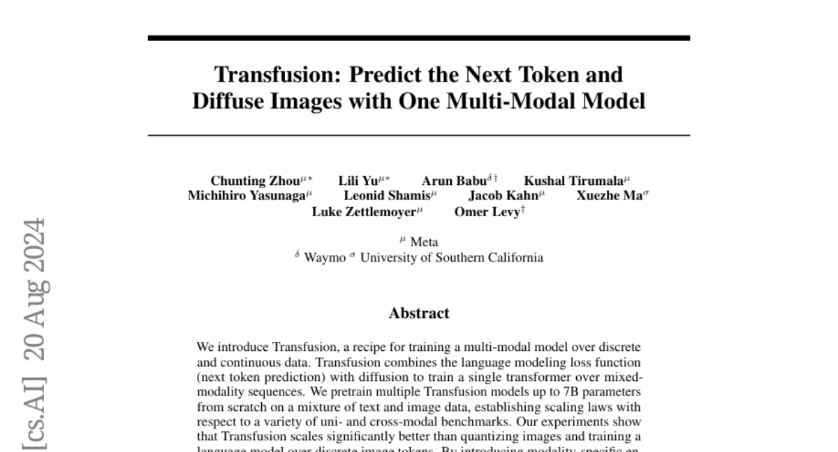 Transfusion: Predict the Next Token and Diffuse Images with One
